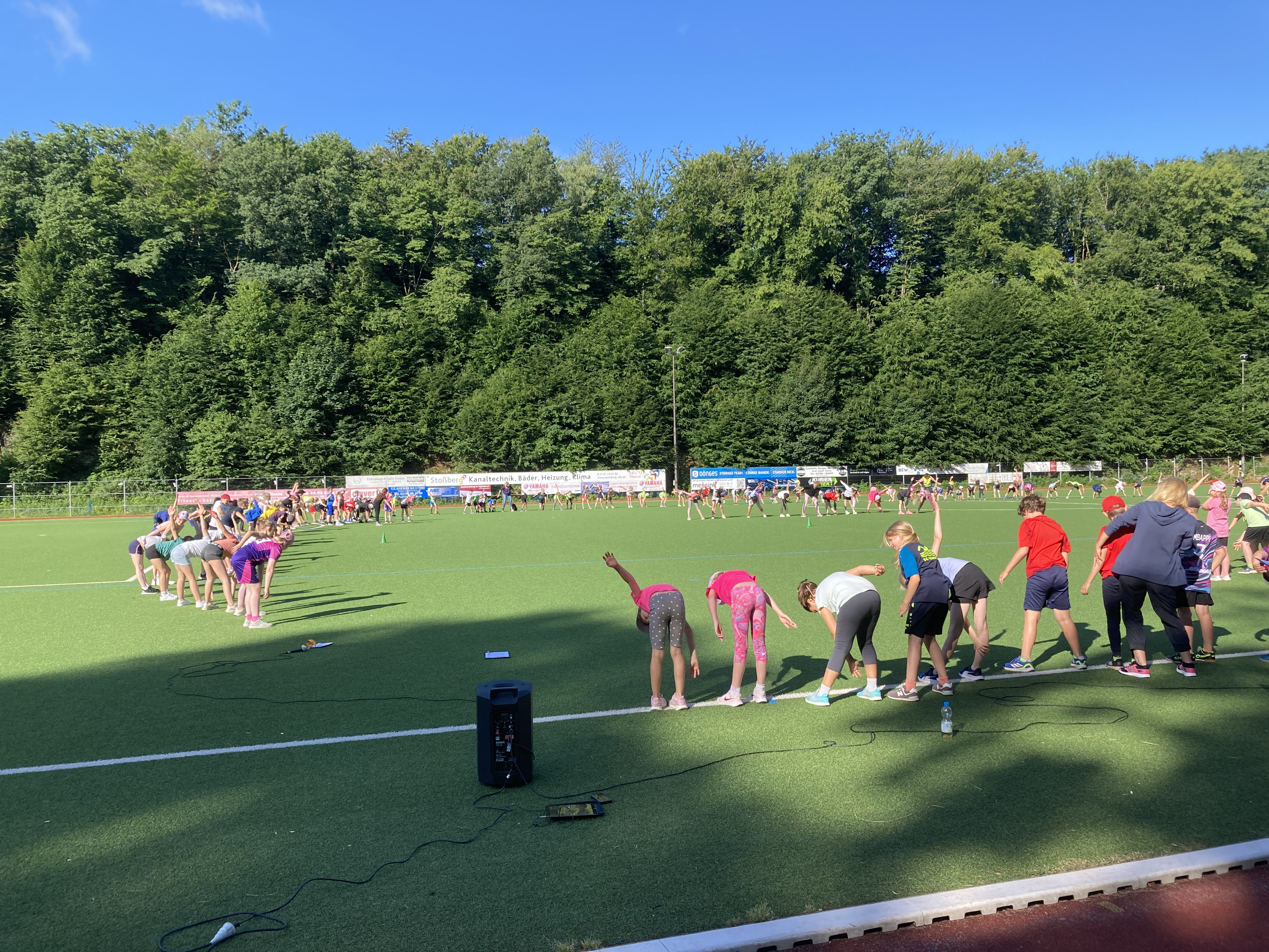 Am 25. Juni konnten bei bestem Wetter unsere Bundesjugendspiele im Eifgenstadion stattfinden. Nach einem Aufwärmlied mit Frau Schulte gings an die Stationen zum Werfen, Laufen und Springen.