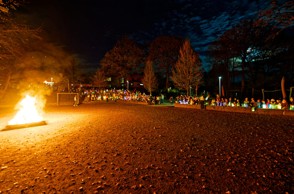 Der Martinsumzug der Waldschule fand am 7. November bei guter Stimmung bestem Wetter im angrenzenden Wohngebiet statt. Viele Nachbarn hatten ihre Fenster und Vorgärten mit Kerzen und Fackeln geschmückt. Vor Haus Vogelsang hielt der Zug kurz inne, um für die Bewohner Martinslieder zu singen. Anschließend führte der Weg hinter Sankt Martin hoch zu Ross her bis auf den Schulhof, wo die Legende vom heiligen Martin vorgelesen und vor dem Martinsfeuer gespielt wurde. Zuletzt durften sich die Waldschulkinder Weckmänner abholen und das Fest mit ihren Familien bei warmem Kinderpunsch ausklingen lassen. Das Team der Waldschule bedankt sich bei allen, die zum Gelingen des schönen Martinsumzugs beigetragen haben.